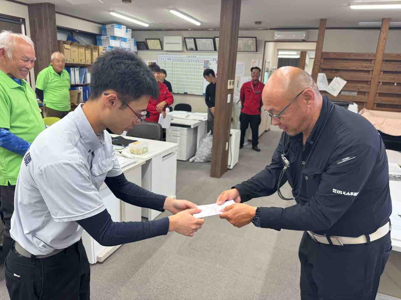 さらに、若手職員が中古住宅を購入したとの嬉しい報告もあり、あわせてお祝いをさせていただきました。