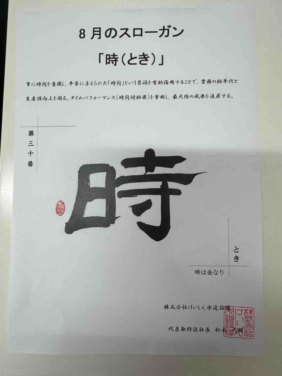 本朝礼では、私より8月のスローガンを発表させていただきました。